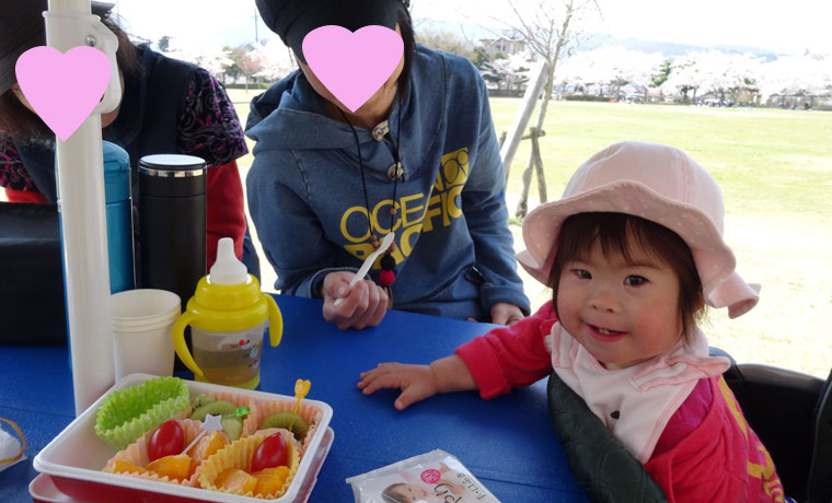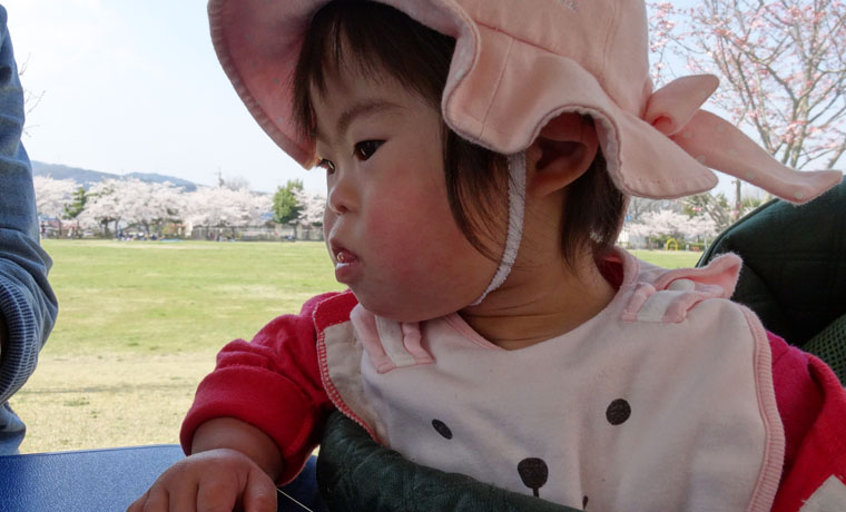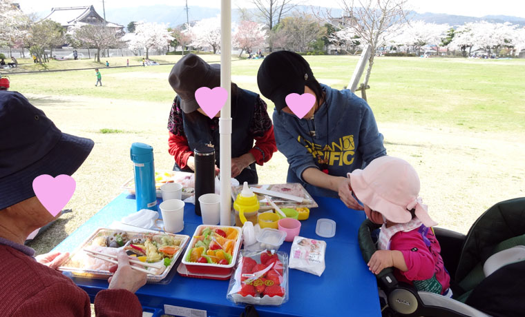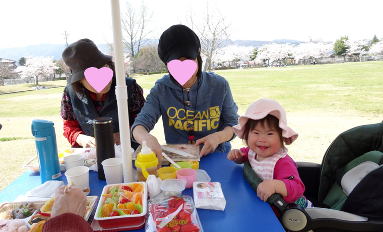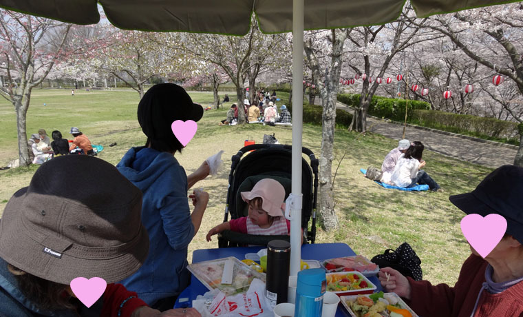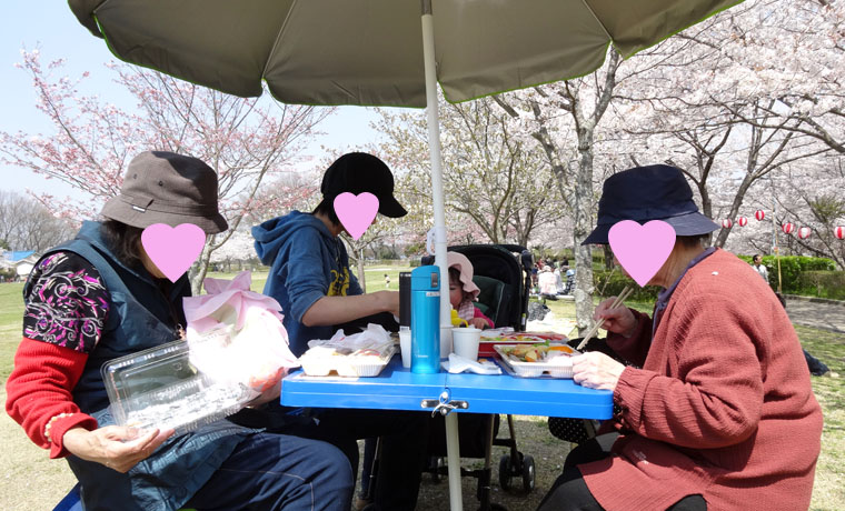 近所の公園の桜が満開になったので、おばあちゃん二人と一緒に花見をしました。