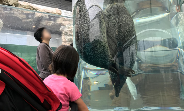 京都水族館は今回で2回目の訪問ですが、今のところ、娘は水族館よりも動物園のほうが好きのようです。