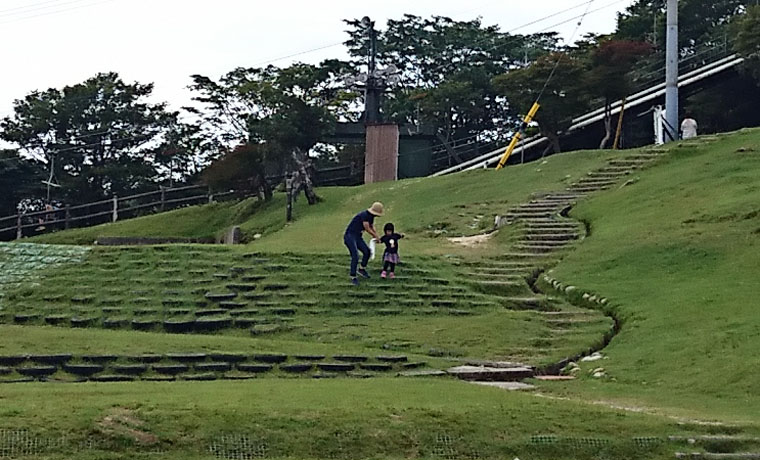 娘は山上にある広場で嬉しそうに歩き回っていました。