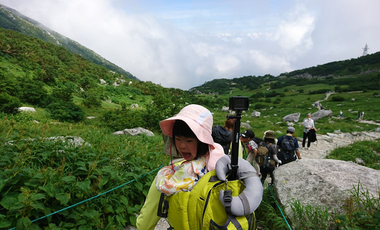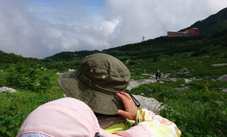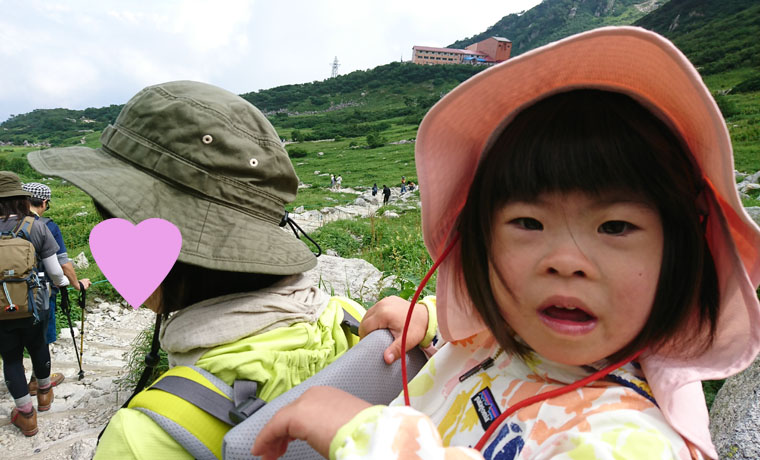 娘は春頃から歩けるようになりましたが、山道を歩くのはまだ無理なので専用のリュックにのせて背負っています。現在、体重は14.5キロほどあり、かなり重いです。。。