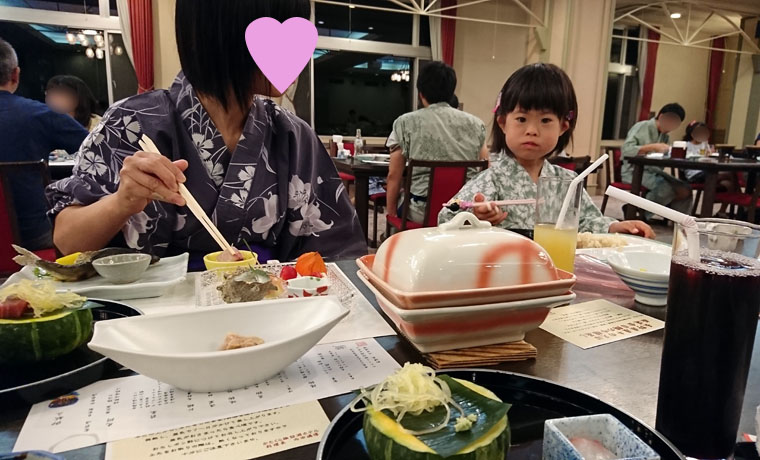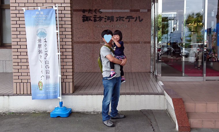 駒ヶ岳を下山した後、信州・諏訪湖ホテルに向かいました。部屋の窓から諏訪湖を一望できる、なんとも贅沢な温泉旅館です。夕食には鮎・鱒・鯉の淡水魚が出てきました。夕食後は部屋の窓から諏訪湖で打ち上げられる花火を30分ほど鑑賞。娘も「きれい!」と大喜びでした。 翌日は、山梨県は勝沼へぶどう狩りに出発。