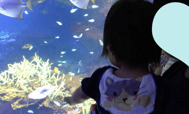 1歳8カ月の時、初めて京都水族館を訪問しました。トロッコ列車に乗った後のことです。京都には楽しいところがたくさんありますよ。