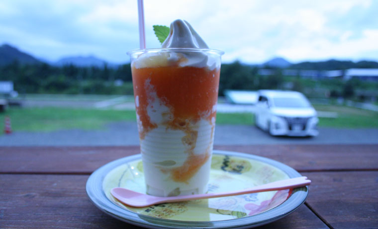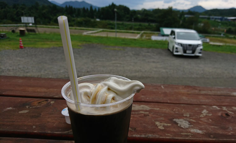 娘が寝ている横で、私たちはお目当てのソフトクリームを頂いております(笑)。