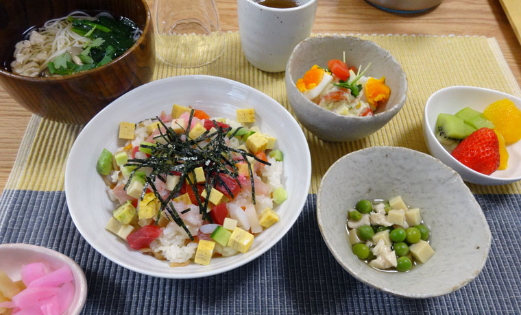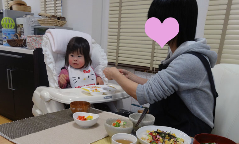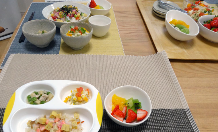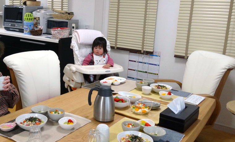 2歳のひな祭りの日、お母さんがちらし寿司を作ってくれて、おばあちゃんも来てくれました。