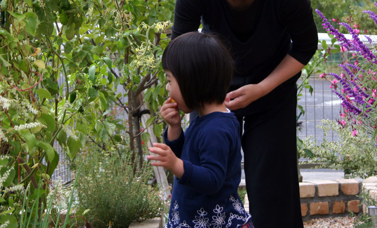自宅でのんびりと過ごしました。自宅庭の植物の紹介です。濃い紫色の花がアメジストセージです。他のハーブ類はいいにおいがしますが、これは特に香りはないです。薄紫色の花がサルビアで、赤い実がなっているのがクックベリーです。きれいな花が咲くそうです。きれいな植物を眺めていると心が癒されます。娘は最後のミニトマトをかじっていました。