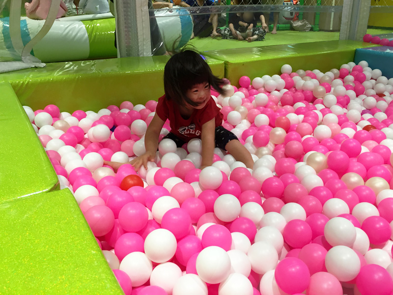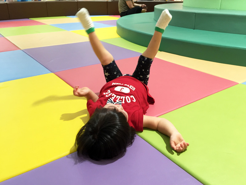 ショッピングモールのキッズスぺースでたくさん遊びました。 そばでついている親の方はハラハラドキドキでヘトヘトです^^;