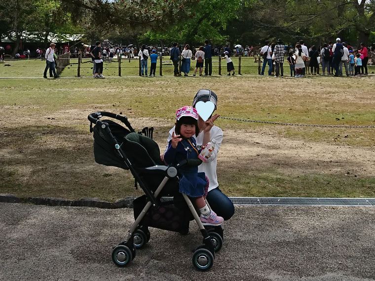 GW二日目、奈良公園へ行きました。2回目です。前回は1歳頃だったと思います。ものすごい人で、なかなか駐車することができず、まずは若草山に登りました。その後、下山して萬葉植物園、大仏様のところへ。