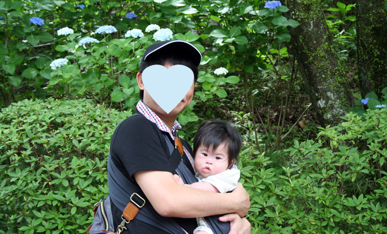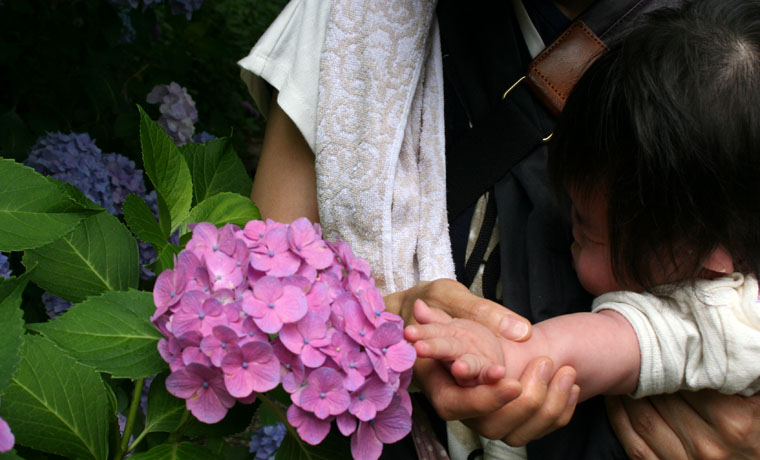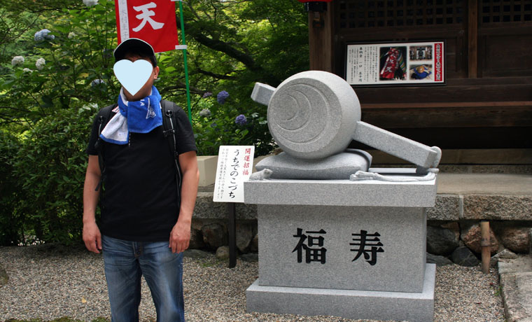 奈良県にある長谷寺の紫陽花(アジサイ)を見に行きました。生後6か月です。打ち出の小槌は私のです(笑)。その後、室生山上公園芸術の森に行きました。
