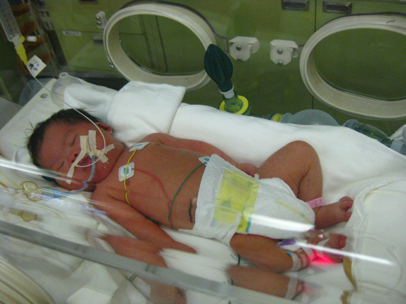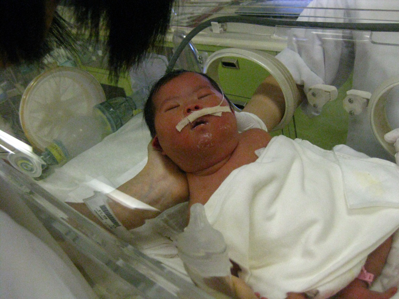 産まれてすぐにNICU(新生児集中治療管理室)の保育器に入りました。最初は1ヶ月程度の予定でしたが、2週間で退院することに。