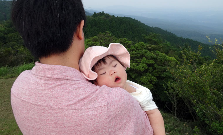 娘に高原からの眺めを見せてあげたくて連れて行きましたが、娘は爆睡中で下山するまで目を開けませんでした。