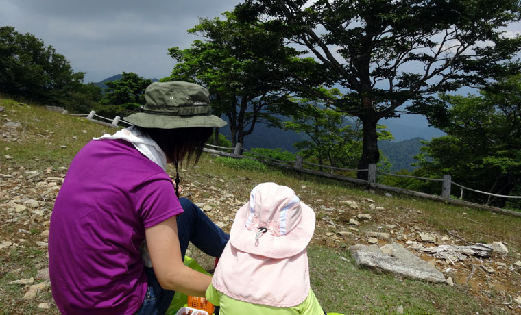 山頂まで、まだまだあります。娘は私の背中の上でおやつを食べてご機嫌でした。お…